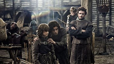 Having agreed to become the King’s Hand, Ned leaves Winterfell with daughters Sansa and Arya, while Catelyn stays behind in Winterfell. Jon Snow heads north to join the brotherhood of the Night’s Watch. Tyrion decides to forego the trip south with his family, instead joining Jon in the entourage heading to the Wall. Viserys bides his time in hopes of winning back the throne, while Daenerys focuses her attention on learning how to please her new husband, Drogo.